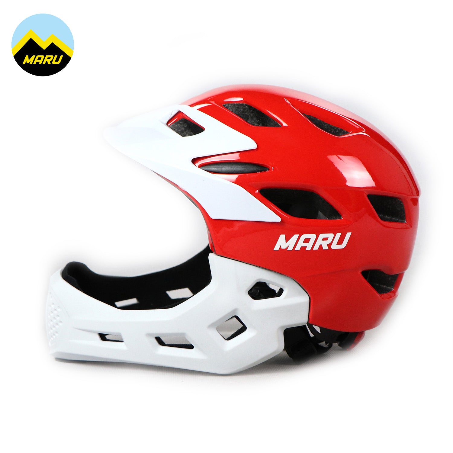 Maru Lightweight PC Kids Full Helmet (Free Size) - Red/White