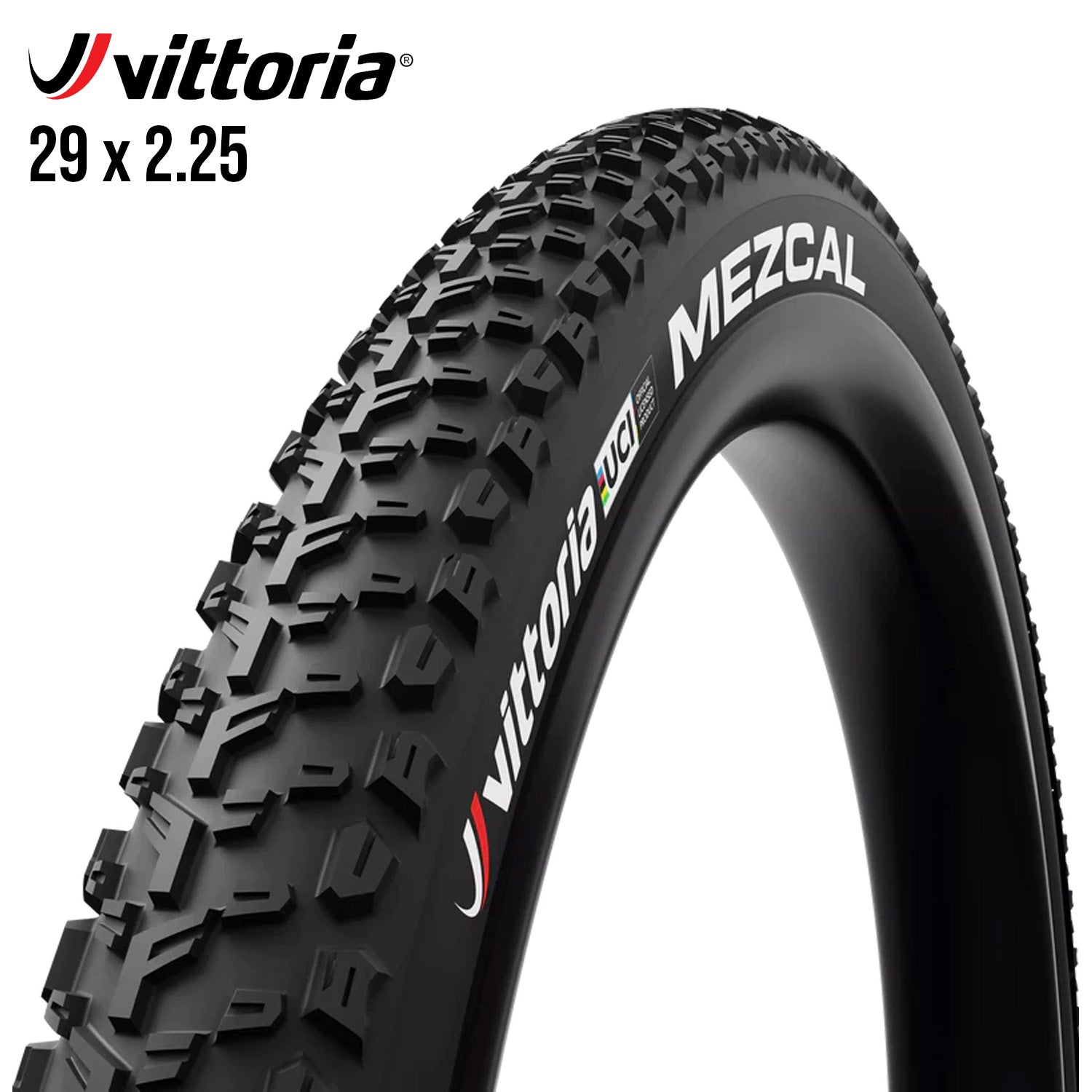 Mezcal XC UCI-licensed Edition is there to celebrate Vittoria's long-lasting partnership with the Union Cycliste Internationale (UCI). This unique version of the popular Mezcal features the UCI logo and a stylish rainbow swoosh on the tire sidewalls.